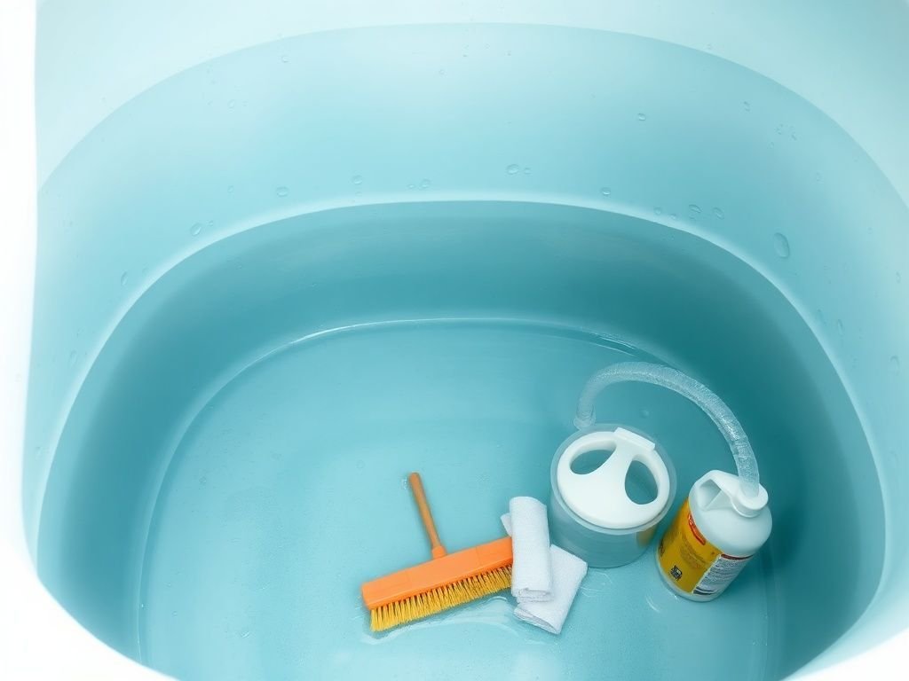 - Desinfecção: Após a limpeza, use uma solução de água sanitária (1 copo para cada 1.000 litros de água) para desinfetar. Deixe agir por pelo menos 30 minutos.